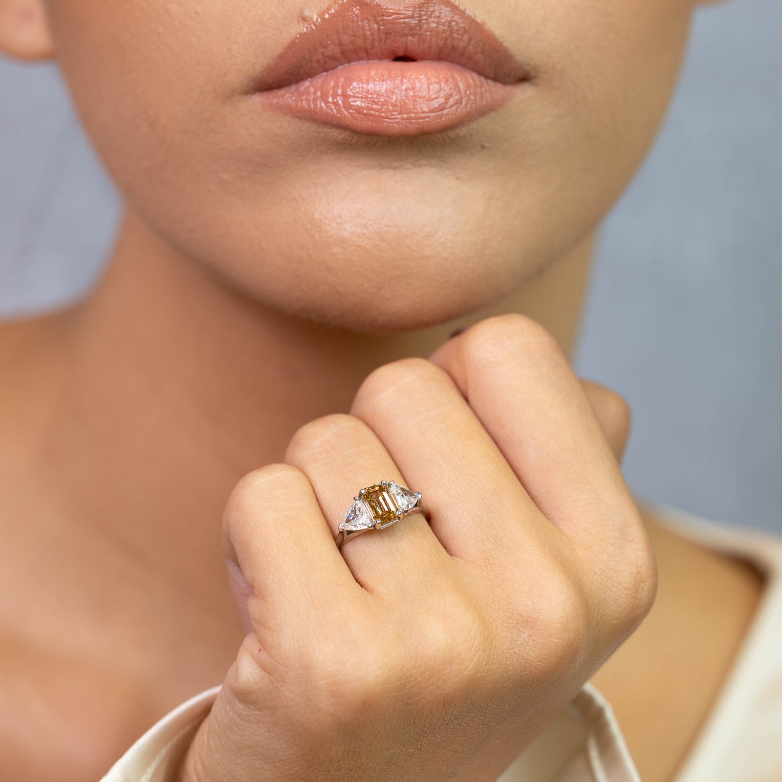 Inel Platina, Diamant Fancy Brown Yellow 1.37 ct VVS2, Diamante Laterale 0.99 ct