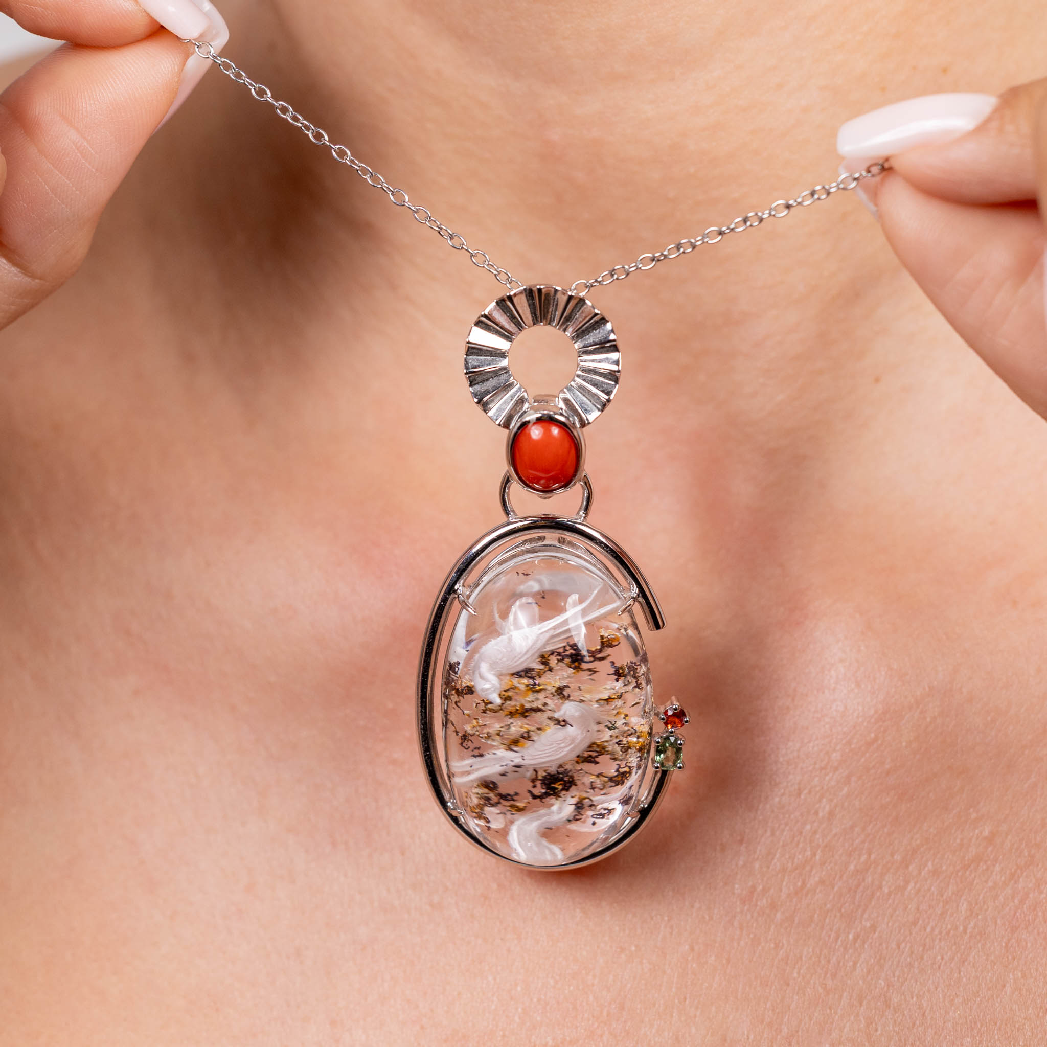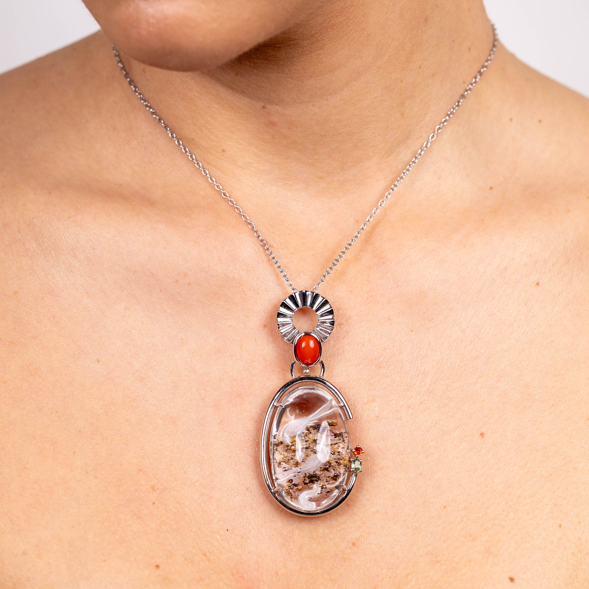 Pandantiv Argint 925, Cuart Panorama, Coral, Safire